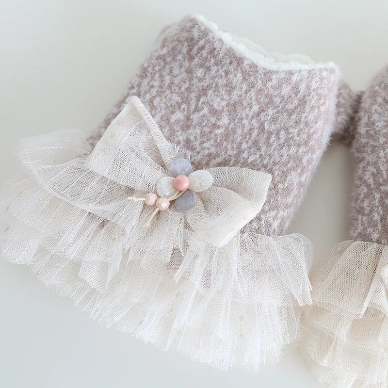 Autumn/Winter Teddy Cat Clothing Pet Clothes Deer Velvet Flowing Gold Yarn Skirt Warm Dog Coats Pets Dress
