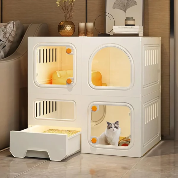 Cat Cages Indoor with Litter Box, Thicken Plastic + Resin Material, 2/3-Tier Large Cat Cage Indoor Enclosure