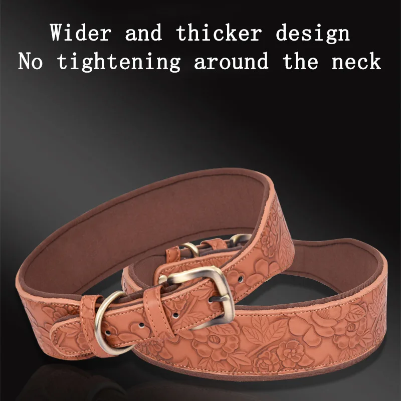 Embossed Leather Pet Collar Soft Space Cotton Backing Dog Collar Medium and Large Dog Collar