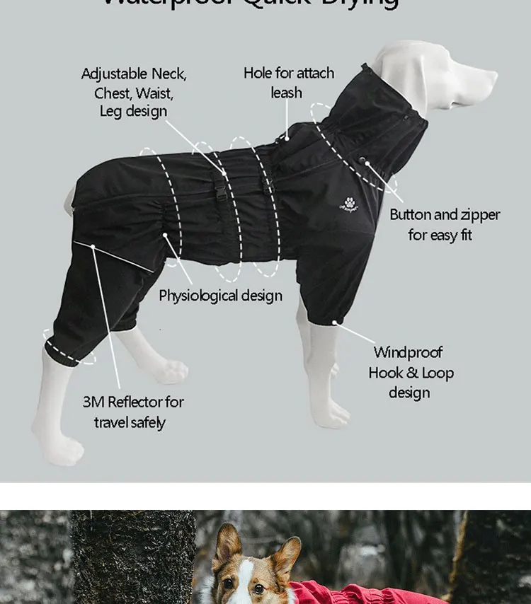 Full waterproof dog raincoat polyester dog coat breathable quick-drying pet supplies reflective strips outdoor sports night
