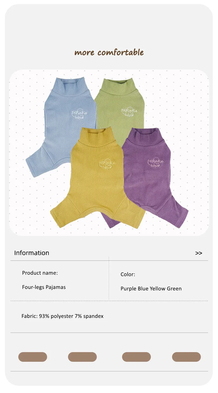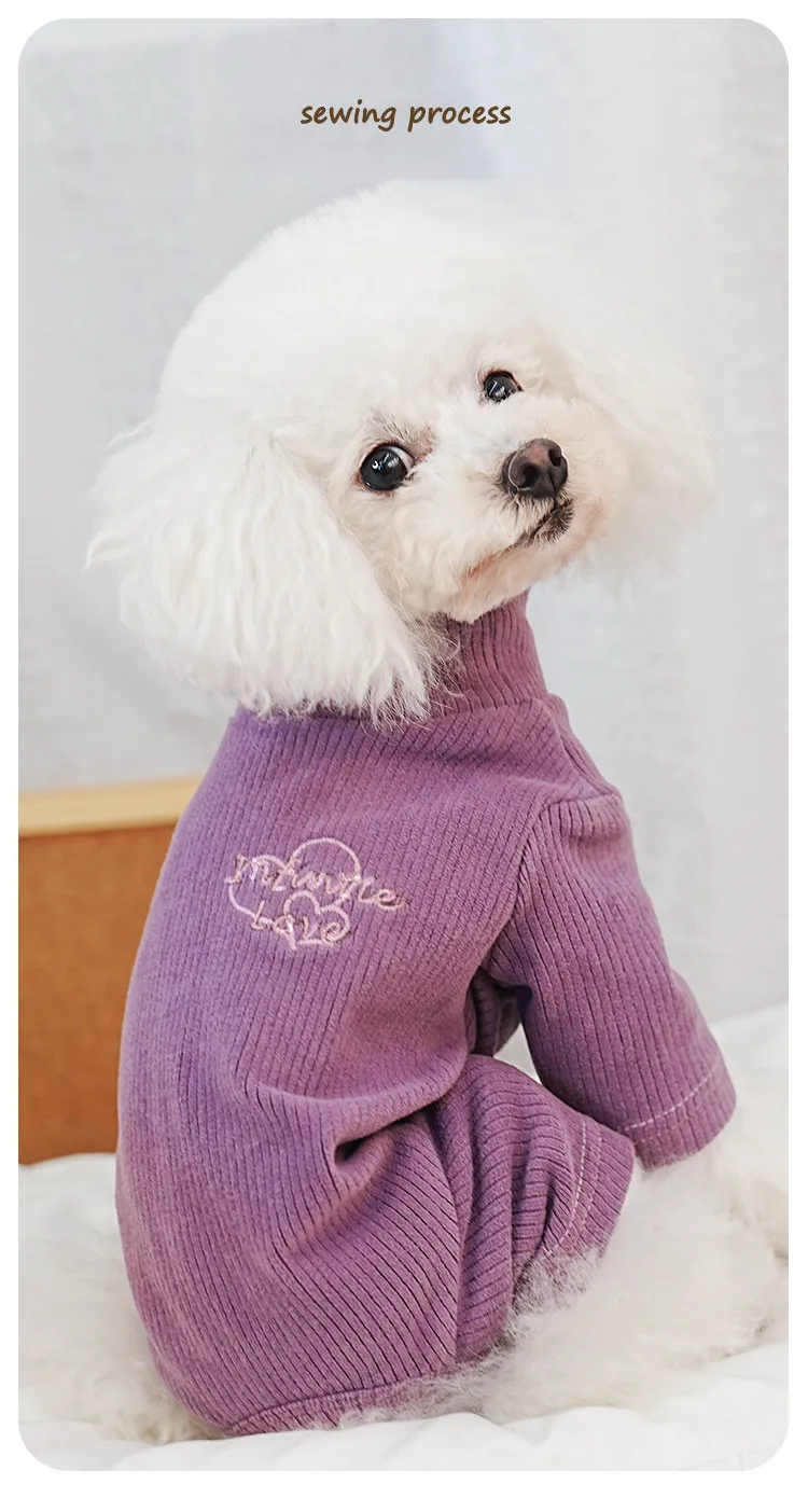 High Quality Dog Pajamas Pet Clothes Embroidered Soft Super Elastic 4 legged Dog Jumpsuit Shirt Striped Teddy Dog Pajamas