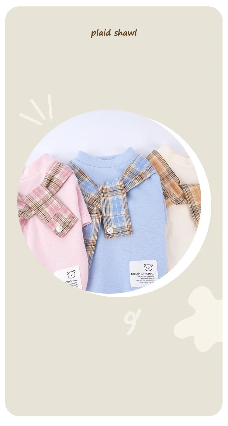 High Quality New Design Pet Clothes Luxury Dog Clothes For Autumn Soft Cotton Korean Plaid Shawl Collar Dogs T shirt Pets Shirt