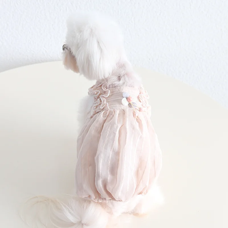 High Quality Pet Apparel Dog Accessories Fashion Cute Lace Vertical Striped Doll Skirt Soft Thin Pet Clothes Dog Dress