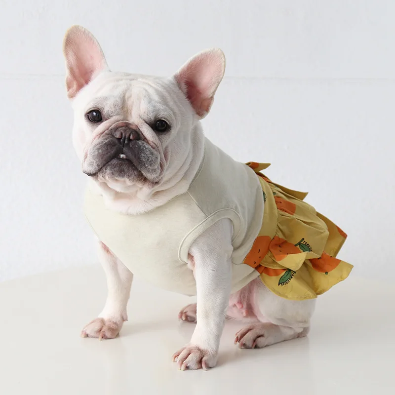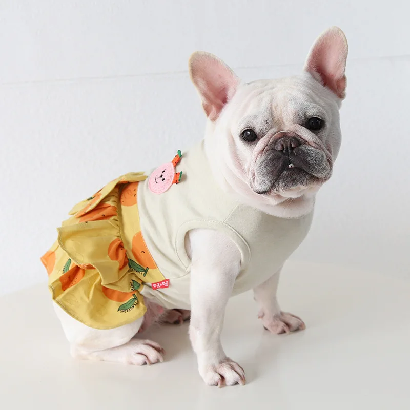 Hot Selling Bulldog Clothes Summer Sweet Fruit Bunny Fat Pet Dog Dress Soft High Elastic French Bulldogs Skirt