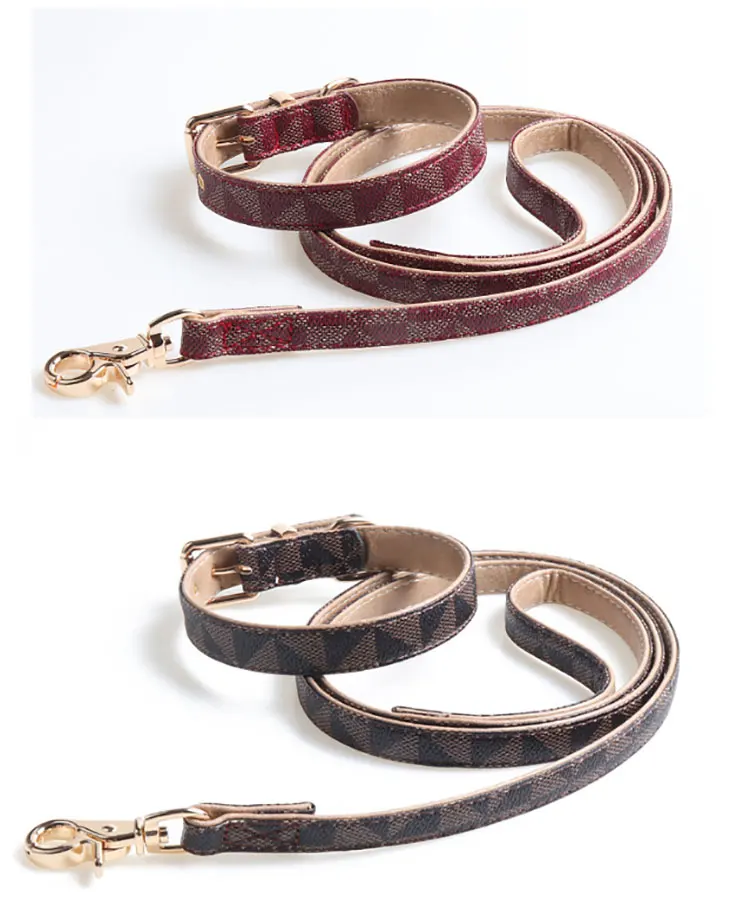 Hot Selling Tear Proof Durable Luxury Custom Leather Dog Pet Collar and Leash suit