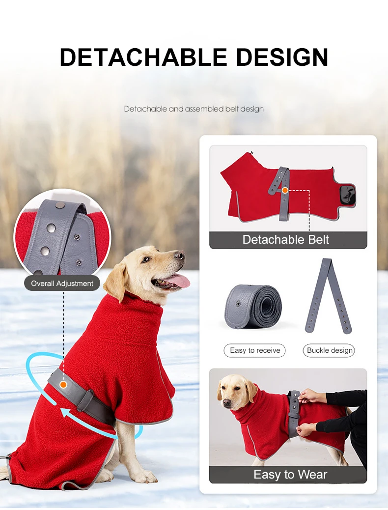 Joymay berber Fleece cape dog costumes leather belt large dog winter coat