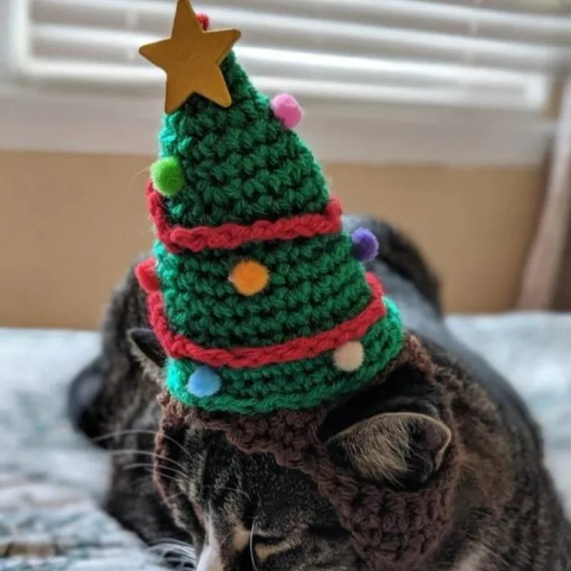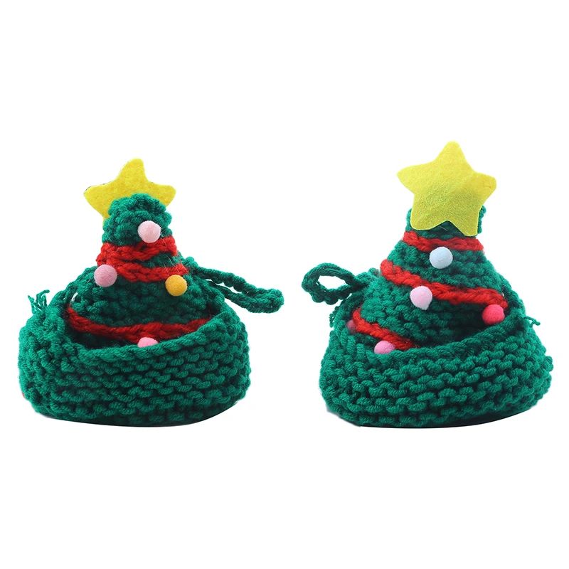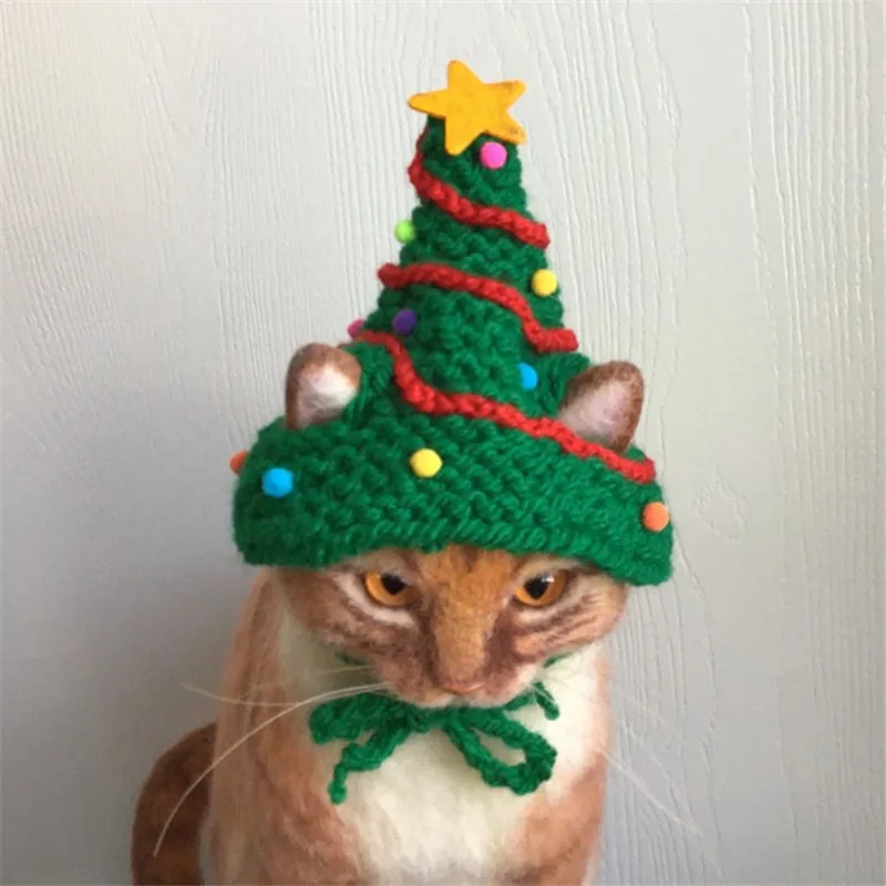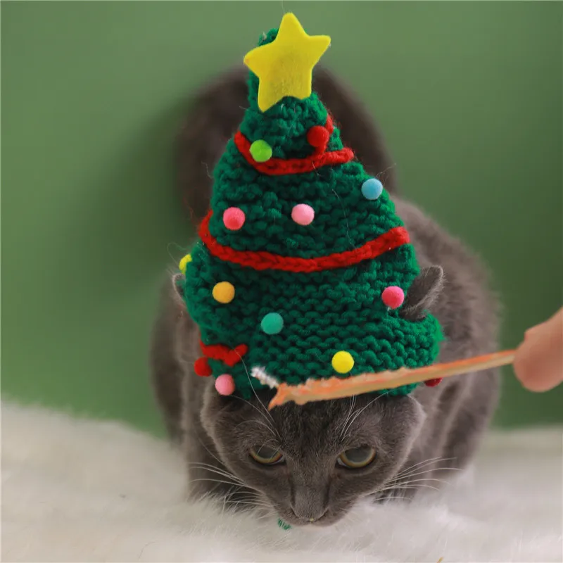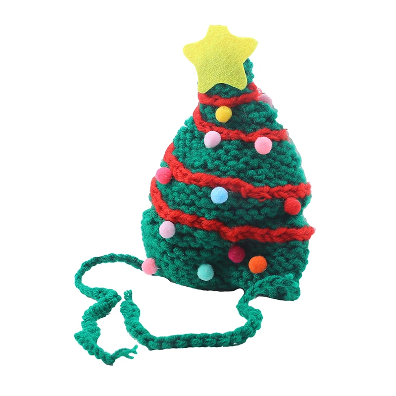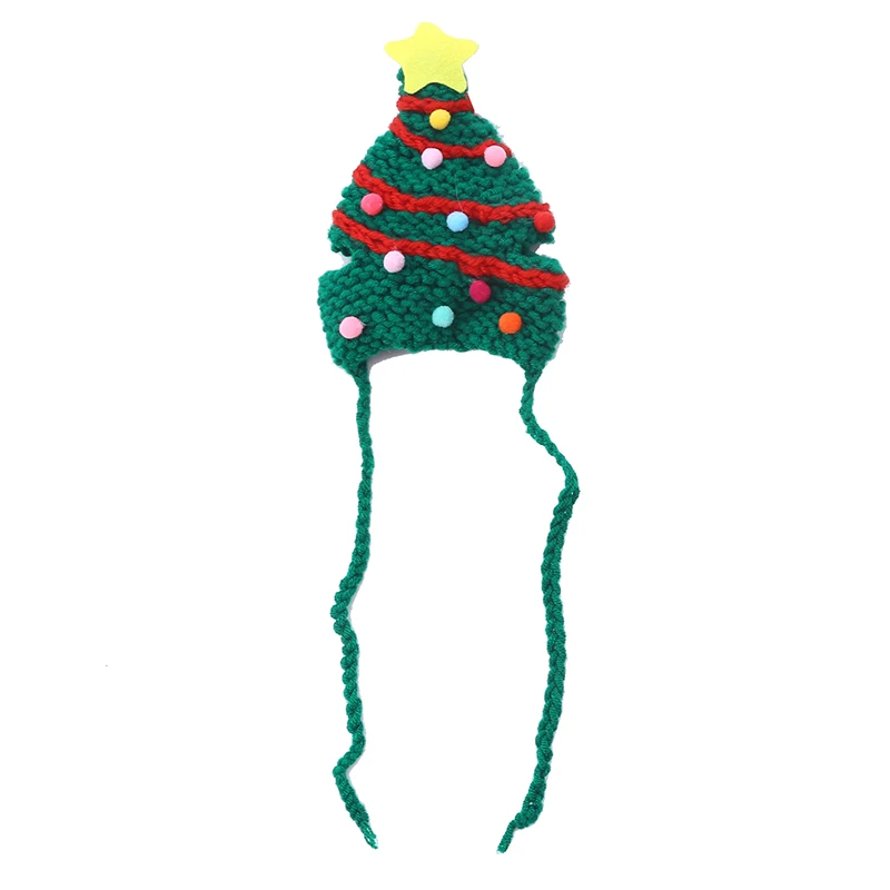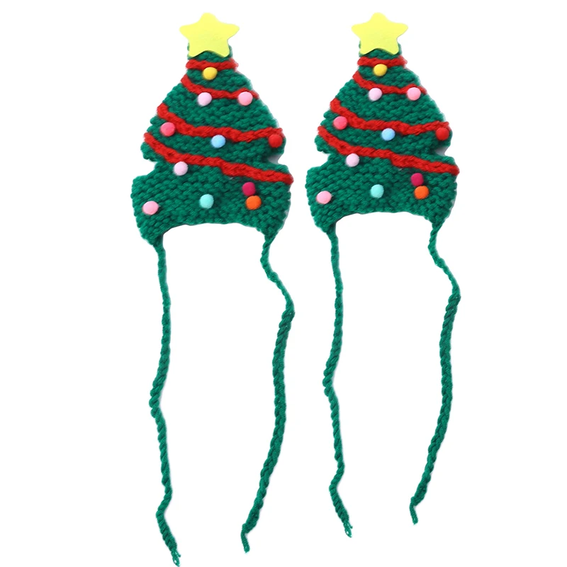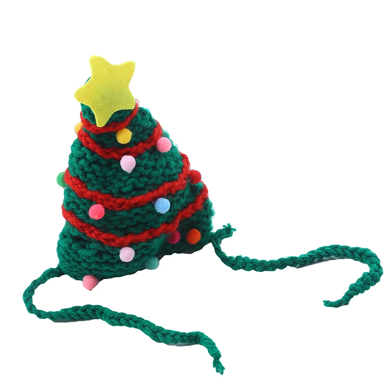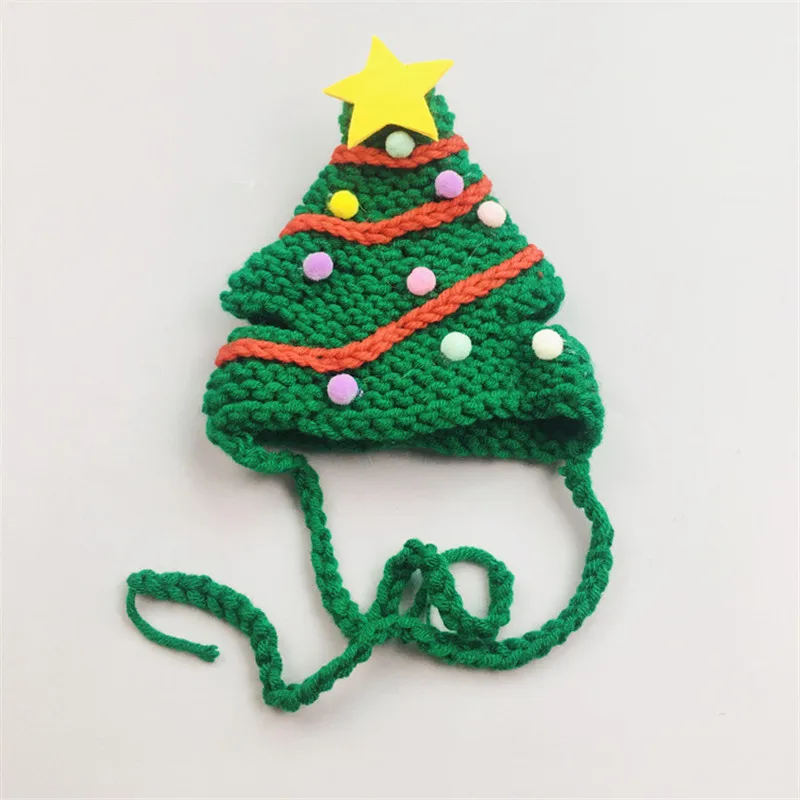 Knitting Christmas Hat for Pet Cat and Dog Winter Warm Plush Knitted Christmas Cap Pets Headwear Xmas Tree Hat For Cats Supplies