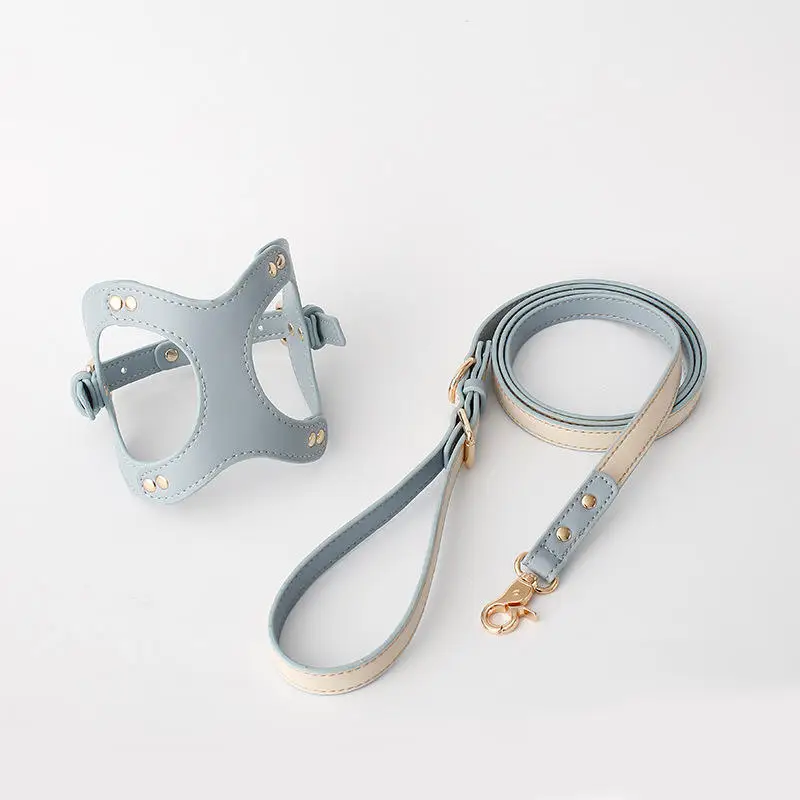 Manufacturer Wholesale Custom Premium Genuine Leather Leash and harness set for dog