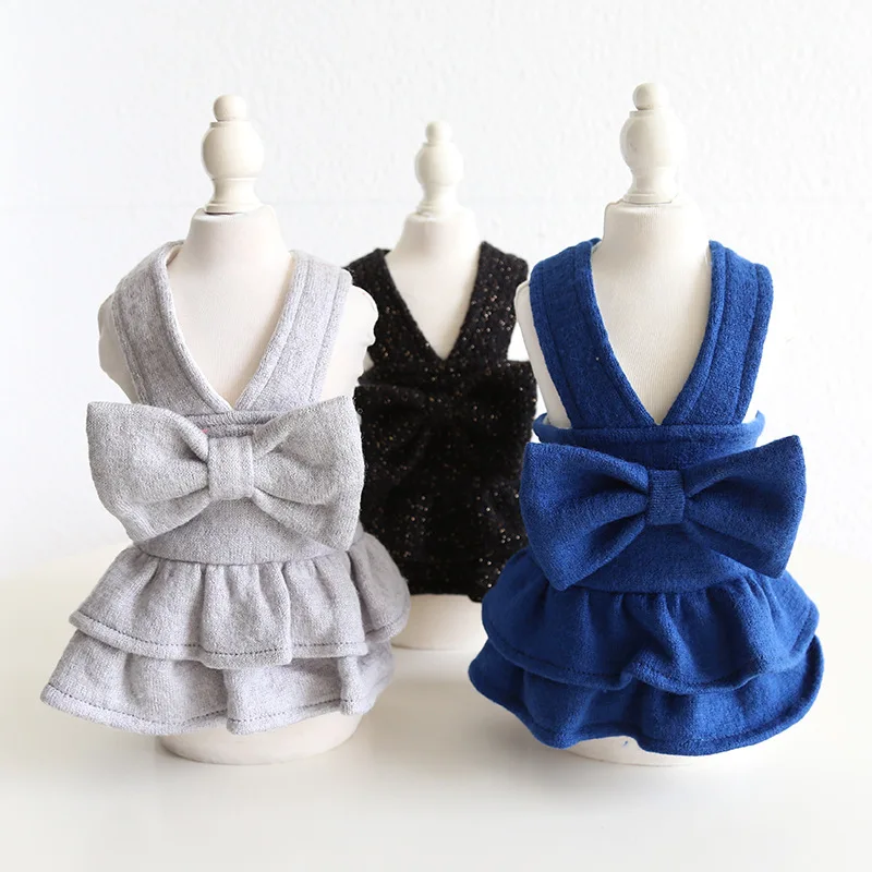 New Design Hot Style Pet Clothes Dog Clothes For Autumn And Winter Fashion Classic Soft Cashmere Oversize Bow Tank Pet Dress