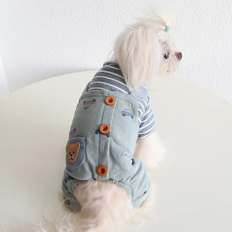 New Design Pet Clothing Dog Clothes Fashion Cartoon Car Print Warm Fleece Lined Winter Dog Coat Pet Jumpsuit For Puppy