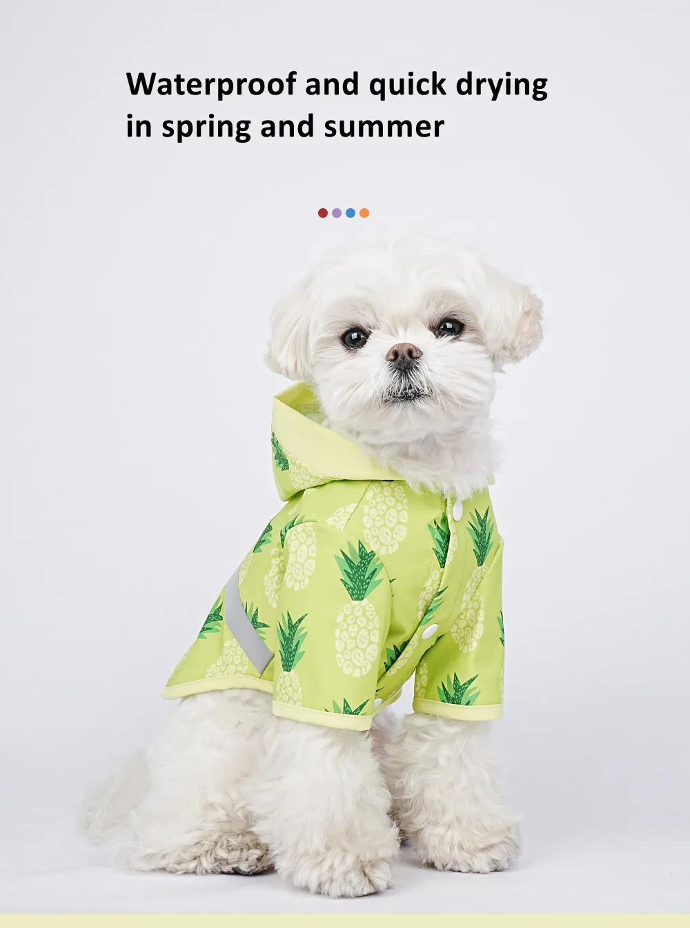 New Design Pet Raincoat Dog Hooded Jacket For Summer Reflective Windproof And Waterproof Fresh Fruit Print Dogs Raincoats