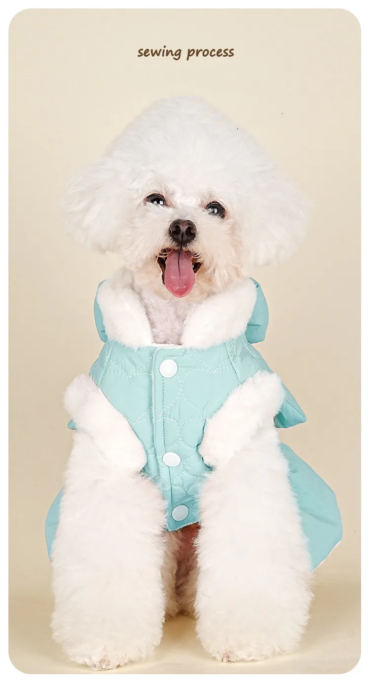 New Products Luxury Pet Clothes Dog Apparel Dress Quality Soft Fleece Lining Pets Jacket Bow Neckline Warm Winter Dog Coat