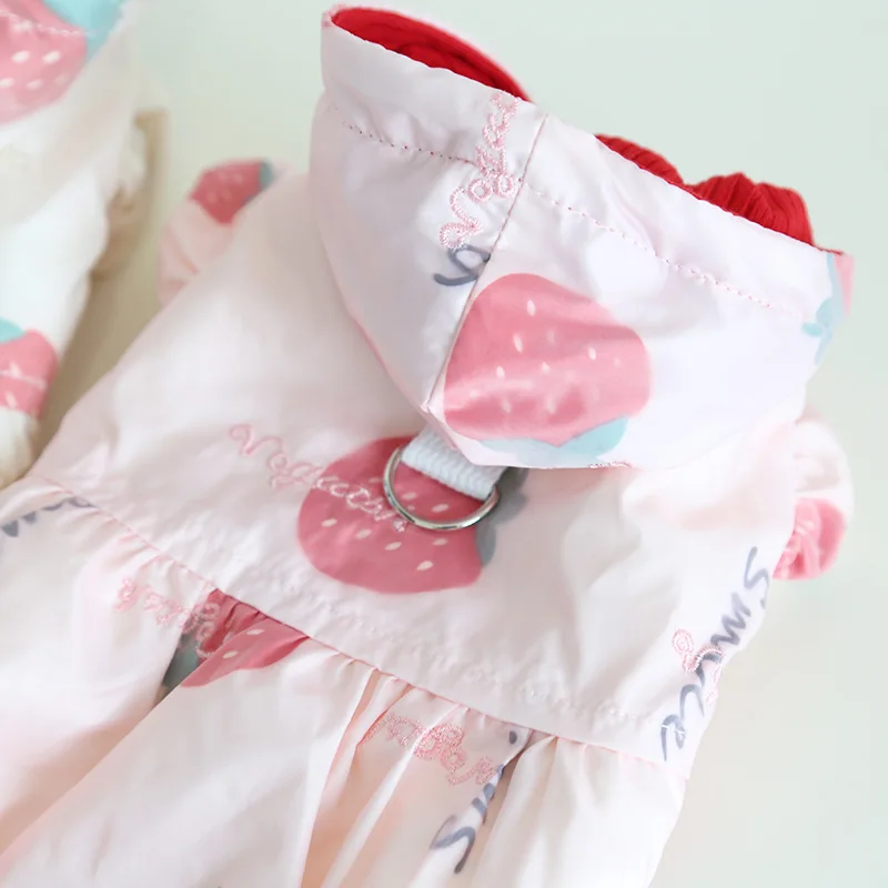 Newly Designed Autumn Winter Pets Dog Clothing Fashion Cute Strawberry Thickened Dog Coat Windproof Warm Pet Jacket