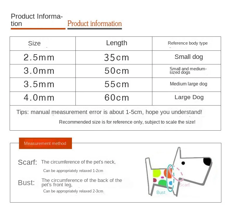 2.5mm*35cm ,3.0mm*50cm ,3.5mm*55cm ,4.0mm*60cm |
