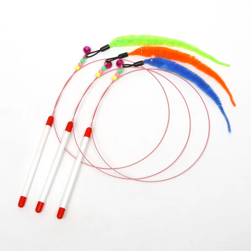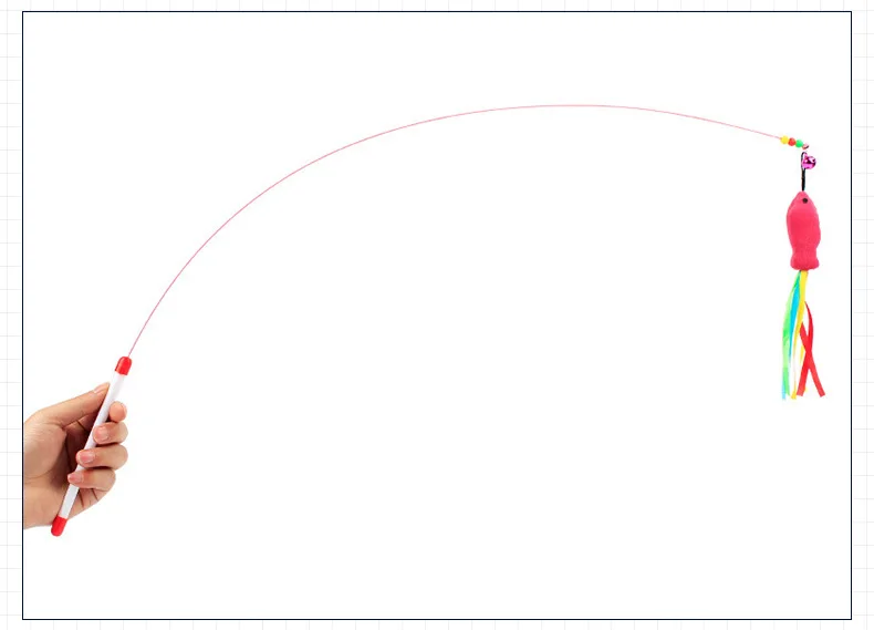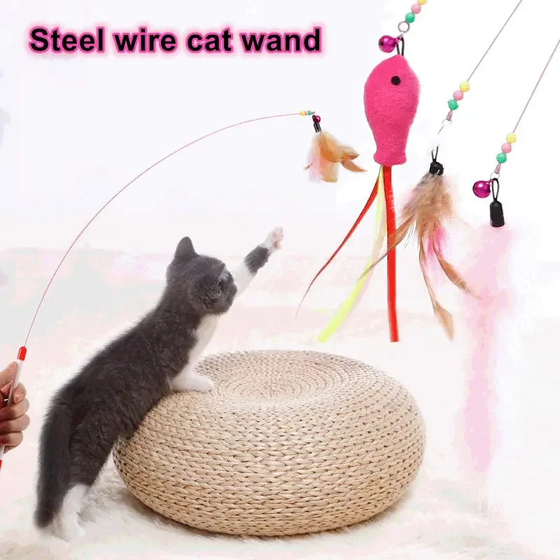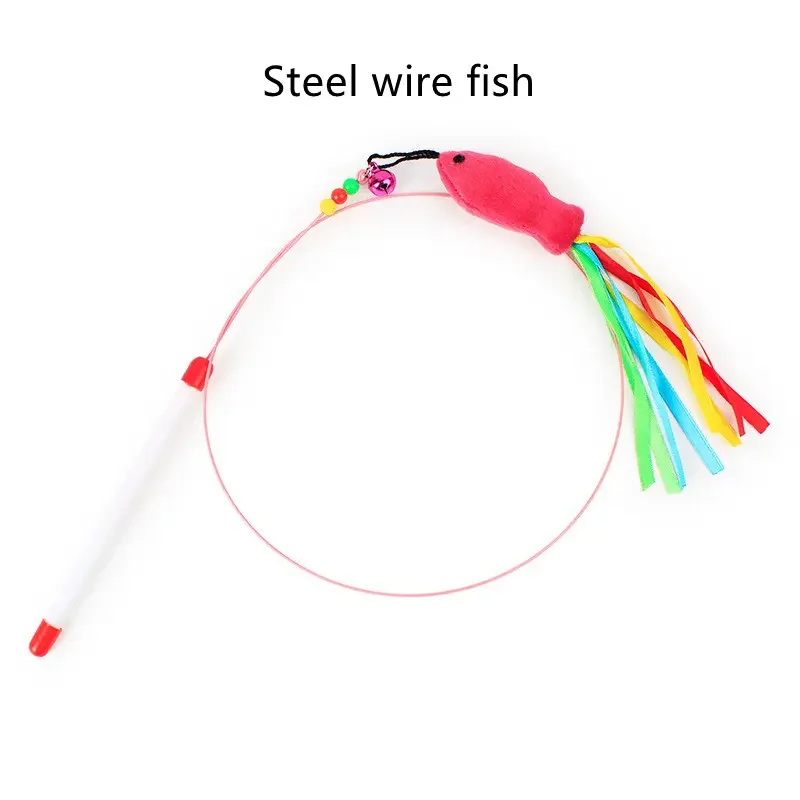 Steel Wire Teaser Stick,Cat Toy Plastic Pole Feather Cat Teaser Stick Interactive Cat Playing Toy With Plush Fish Mouse