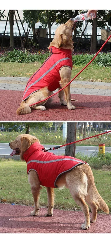 Waterproof Dog Clothes for Large Dog Jackets Winter Warm Padded Fleece Pet Coat Safety Reflective Designer Dog Clothing